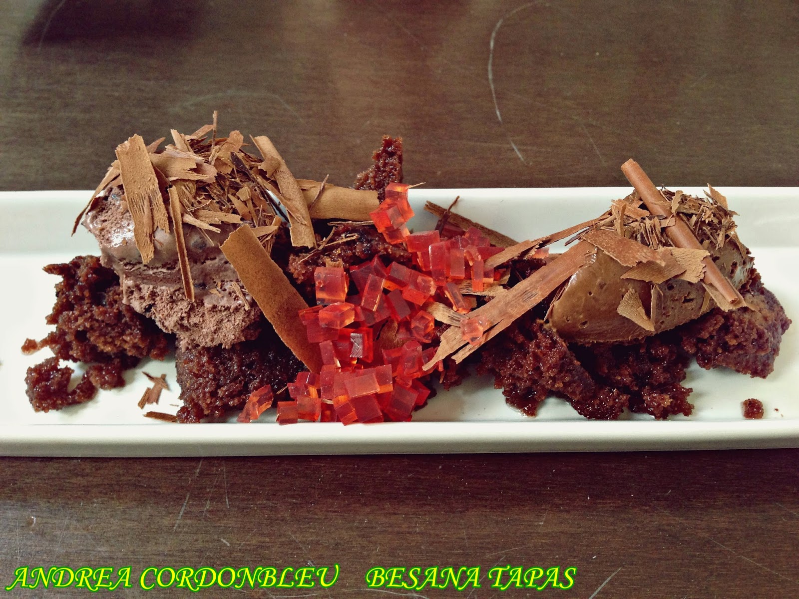 Sacher: esponjoso bizcocho de chocolate negro con gelée de cereza, mousse 55 % de cacao y su propio helado