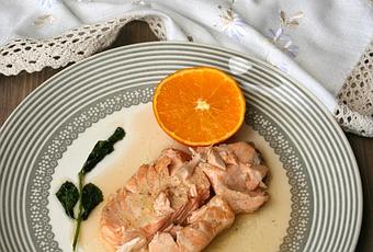 Salpimentamos la rodaja de salmón.