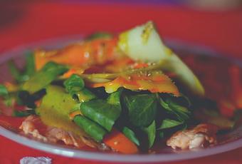 Nada especial el salmón a la plancha salvo el corte, que fileteamos en láminas finas para hacer un vuelta y vuelta en la plancha. Acompañado después con una ensalada de berros con zanahoria y pepino, además de una salsa de miel y mostaza. Simple, rápido y muy rico.