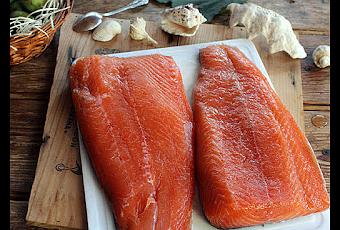 Para la receta necesitamos medio salmón fresco de parte de la cola, más o menos unos 2 kg. Después de filetear, se queda en 1,5 kg entre los dos filetes.