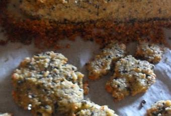 Que hacer con ella, porque no estan los tiempos para tirar la comida, una solucion muy facil, mezclar la mezcla de costra con mantequilla y un poco de queso rallado y hornearla en forma de galletas junto con el salmon.