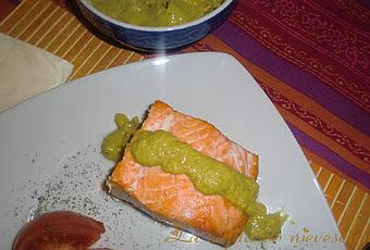 Servimos el salmón con un poco de crema de naranja templada por encima. Es na delicia os lo aseguro. Además la crema que os sobre es ideal en frio para acompañar pasteles de pescado y en caliente platos de carne con sabor fuerte, como el cerdo.