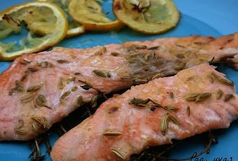 En esta ocasión, he preparado un plato muy sencillo pero con la presencia del hinojo y del tomillo tiene un gran sabor. Estoy segura de que podríamos sustituir el salmón por casi cualquier pescado, una merluza, gallo, dorada...