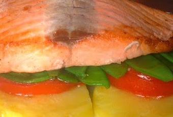 - Salo las supremas de salmón y las frío en un poco de aceite. Si tienen piel primero del lado que no tienen la pie ( por lo tanto lo que tu ves es la piel) Las mías no tienen piel.. Tienes que ver que ha cambiado de color hasta la mitad antes de girarlo