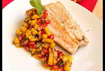 Cómo preparar este Salmón con vinagreta de mango y granada, paso a paso:
