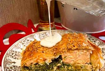 Cómo preparar tu salmón en costra de espinacas y salsa de queso azul