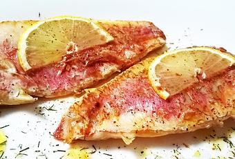 Ingredientes:Eneldo seco o fresco, Un limón limpioAceite de olivaSalPimientaLomos de salmonete