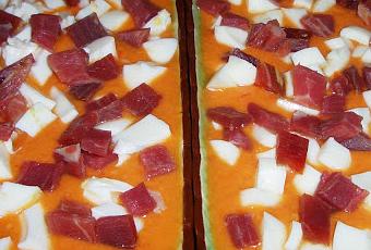 Una vez que quede cremosa y bien batida, pasamos a una fuente y decoramos con los huevos cocidos y el jamón serrano, en taquitos