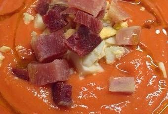 Lo enfriamos y justo antes de servir le añadimos unos taquitos de buen jamón y huevo duro picado y ¡¡¡A disfrutar!!!.