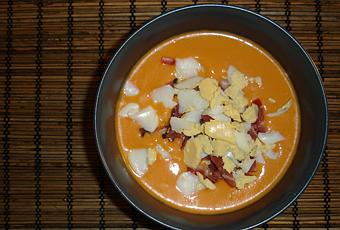 Podemos hacer el Salmorejo con tomate natural o con tomate pelado natural en conserva, yo lo hago con tomate natural, que me gusta mucho más el sabor, así que os voy a contar como lo hago con este tomate, si os apetece hacerlo con tomate en conserva, lo único que tenéis que es sustituírlo y listo.Como os he dicho, hago el Salmorejo a lo grande, para tener siempre en el frigo, así que si que utilizo un kg de tomate de pera (que para mí es el que da el mejor sabor) pelamos el tomate (para ello lo sumergimos unos minutos en agua hirviendo y se pela mucho más fácil), un diente de ajo, sobre esto os recomiendo ponerle primero sólo un diente de ajo, y si luego os gusta más fuertecito le añadís más ajo, que añadir siempre se puede, pero quitarle... es más difícil, unos 150 gr de aceite de oliva, un chorrito de vinagre, y sal.Ponemos todos los ingredientes juntos y los trituramos, si nos hemos quedado un poco cortos de algún ingrediente, rectificamos.Ahora a dejar enfriar, y a la hora de servir le picamos un poquito de jamón serrano y huevo cocido por encima... y listo para disfrutar de un plato fresquito, sano y riquísimo.¿Os apetece un poquito Salmorejo cordobés?