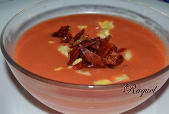 Hoy publico una receta que tenia pendiente del verano, pero por una cosa o otra hay estaba aun sin publicar, bueno hasta hoy aquí la tenéis aun queda algún día de solecito como hoy y a lo mejor os apetece prepararla.He de decir que no lo había probado nunca hasta este verano y me encanto, así que el próximo verano disfrutare mas de este salmorejo, aprovechando la temporada plena de tomates.Vamos con la receta Ingredientes:Un kilo de tomates200 gramos de pan de payés250 gramos de aceite de oliva virgenUn diente de ajoUna cucharadita de salDos huevosSeis lonchas de jamónPreparación:Primero de todo tendremos los tomate en la nevera para que estén fresquitos.Ponemos a cocer los huevos, dejamos enfriar pelamos y reservamos.Lavamos los tomates, los pelamos y los partimos a trozos lo trituramos y colamos para quitar las pepitas, metemos en un bol y añadimos el pan a trozos, lo mezclamos y lo dejamos unos diez minutos para que se empape bien.Mientras ponemos en el microondas las lonchas de jamón entre papel absorbente y lo ponemos hasta que este con ese tono crujiente y reservamos.Añadimos junto el tomate, el ajo y el aceite y lo trituramos todo hasta que este todo bien mezclado.Partimos a trozos pequeños los huevos y las lonchas de jamón y reservamos.Ponemos en un cuenco o plato el salmorejo y le añadimos un poco de huevo picado y jamón por encima.Espero que os guste mi salmorejo echo a mi manera, claro esta.Que aproveche!!https://www.facebook.com/midiversionenlacocina