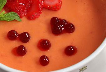 Ingredientes para 6 raciones 1 tomate grande de unos 400 gr o dos pequeños, 18 fresas, 18 picotas, 200 gr de pan duro, 200 ml de aceite de oliva virgen extra Royal, salCómo hacer salmorejo de frutas