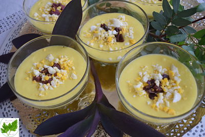 ¡ Madre mía, cómo pasa el tiempo, parece que fue ayer !Pues no fue ayer, sino hace cinco años que probé por primera vez el salmorejo de mango y me enamoró. Es un salmorejo elegante para la vista y el paladar, de asombroso sabor. Acompañado con jamón, resulta una combinación agridulce espectacular. Cercanas las fiestas, es un entrante fresco y perfecto para comenzar las mejores comidas. Este salmorejo me trae buenos recuerdos, pues lo puede disfrutar en casa de mi amiga Victoria Eugenia, conocida por vosotros por su blog Cocinando con Mandil. Siempre es un honor y un placer sentarnos a su mesa, pudiendo disfrutar de la compañía de los mejores amigos desde hace ya muchos años. He querido publicar esta receta en el dia de hoy, pues es su cumpleaños y se la quiero dedicar. ¡ Victoria, muchísimas felicidades, te deseo un día muy feliz ! Espero que este regalito te guste, brindo contigo a tu salud y por muchos años más de amistad. Espero que mi versión sea de tu agrado.