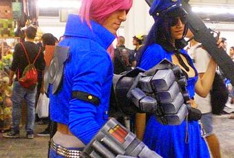 para asistir a un largo desfile de cosplays (= disfraces de los héroes manga),