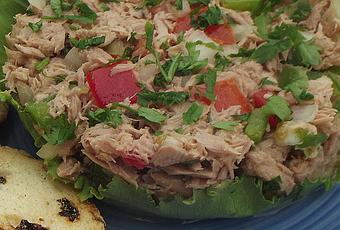 Mezclamos todas las verduras en un bol, le añadimos el atún desmenuzado, lo aliñamos con el aceite de oliva, el vinagre, las hierbas provenzales, la pimienta y el perejil picado.