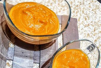 Pasamos la salsa por la batidora y colamos.Corregimos de sal si fuera necesario.