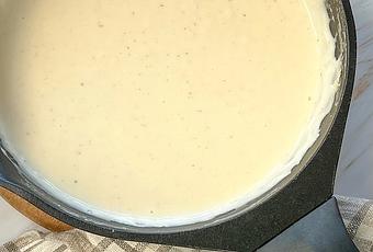 - Incorporar la sal y la nuez moscada y mezclar con las varillas.