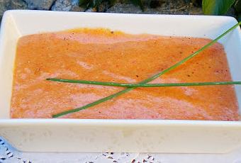 Ingredientes para unas 4 personas: 175-200 gr. de pimiento rojo asado 200cc. (un vaso) de leche evaporada Un diente de ajo Sal, pimienta negra Aceite de oliva virgen extra