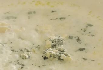 Añadir el Queso Crema y el Queso Azul desgranado o en trozos pequeños. Mezclar bien y cocinar durante unos 5 minutos.