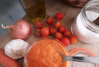 -Si terminada la cocción se desea triturar más el tomate, no hacerlo en caliente, esperar a que se enfríe un poco y triturarlo en velocidad 7, pero quedará de color naranja.