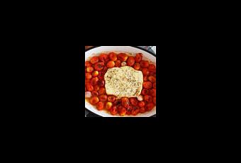 En una fuente para horno colocar los tomates enteros junto con el diente de ajo (con piel).