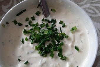 100 gr de queso crema tipo Philadelphia o creme fraiche 1 cucharadita de zumo de limón 1/2 diente de ajo prensado o1 cucharadita de ajo en polvo 1 cucharadita de cebolla en polvo o en escamas 1 cucharadita de orégano seco 1 cucharadita de mostaza suave 1 cucharada de cebollino picado (optativo)