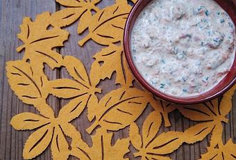 Preparar la salsa mezclando bien en otro cuenco la mayonesa, mostaza, yogur y vinagre hasta que todos los ingredientes se integren. Salpimentar al gusto.