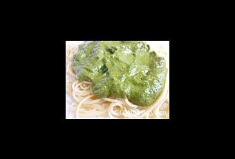 Hoy les presento el pesto tradicional pero he sustituido los piñones por almendras y ha quedado estupenda. Espero que les guste!