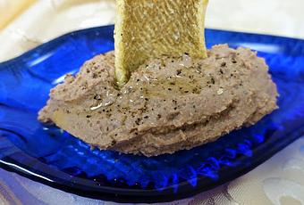 RESULTADOCuando se piensa en una receta como esta, que usa hígado para obtener sabor de pescado, no se albergan demasiadas esperanzas. Sin embargo, el resultado es más que bueno. Delicioso. ¿Sabe a pescado salado? Hombre, pues no. Tampoco tiene aspecto de pescado, por mucho que lo pongamos en el molde de pescado. Pero sí sabe a algo que no es.El sabor a hígado queda bastante disimulado con el garum, que es lo que le da la ilusión de pescado. De hecho, sabe bastante a un aperitivo italiano llamado ‘crostini neri toscani’. Y no me extraña, porque la composición es casi idéntica: al margen de las pequeñas variaciones posibles, los crostini llevan hígado de pollo, anchoas, alcaparras y aceite de oliva. Y tengo que decir que este plato de Apicio me los recuerdan, y mucho.Vayamos con la segunda receta.Aliter vice salsi(IX, X, 11)texto original: “cuminum, piper, liquamen teres, et passum modice vel caroenum et nuces tritas plurimas misces et simul conteres et ‹in› salsare defundes. oleum modice superstillabis et inferes”traducción:“otra forma de sustituir el pescado salado: pica en un mortero comino, pimienta, garum; añade un poco de vino de pasas o vino dulce cocido y muchas nueces picadas. Echa todo en una salsera. Rocía con aceite de oliva y sirve.”INGREDIENTES:- nueces