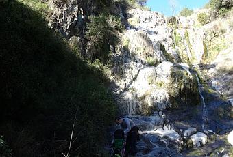 Pronto encontramos las primeras señales hacia el Salt. El camino baja a través de un bosque hasta la Riera de Maspujols. En este punto giramos a la derecha y continuamos por el cauce seco. Más adelante salimos de la riera y enlazamos con un sendero que lleva al Salt. Si la estación no ha sido seca podremos ver una hermosa casacada. El agua cae por una pared vertical de roca y forma dos pequeños estanques.