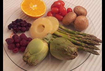 30 gr de Arándanos rojos deshidratados 30 gr de Frambuesas frescas 2 Alcachofas grandes 6 Espárragos trigueros 3 Champiñones Portobello 10 Tomates cherry ½ Naranja Sal Aceite de Oliva Elaboración paso a paso 1. Cortar alcachofas, champiñones y espárragos en cuartos, los tomates los cortaremos a la mitad y las frutas las dejaremos enteras. En un sartén, colocar un poco de aceite de oliva y dorar las alcachofas, cuando éstas hayan adquirido un color dorado, añadiremos los champiñones, y los espárragos, los dejaremos dorar a fuego fuerte al menos 3 minutos y finalmente añadir los tomates.