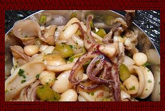 Troceamos los ajetes y los espárragos, los sofreímos (con muy poca sal) y lo regamos con medio vasito de vino blanco, dejamos que el alcohol evapore y añadimos los calamares, a los que previamente le habremos puesto un toque de pimienta recién molida (nada de sal, que luego la soja nos dará el punto al plato). Dejamos que los calamares suelten su agua y dejamos reducir casi todo el este jugo. En este momento añadimos las alubias, (previamente escurridas), le damos una vuelta a todo y finalizamos con un chorro de salsa de soja y el perejil picado, dejamos a fuego medio otros dos o tres minutos y servimos al plato junto con nuestro toque de aceto balsámico.