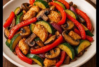 Si hay un plato que nunca falla cuando queremos comer rico, rápido y sin renunciar a cuidarnos, es un buen salteado. Este en concreto —con pollo dorado, setas jugosas y verduras crujientes— es de esos que huelen a cocina casera pero con un toque moderno digno de foodie de Instagram.