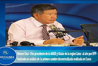 Vice presidente de la ANGR –Nelson Chui hizo un análisis de la primera cumbre realizada en CuscoLa articulación de las políticas públicas en los tres niveles de Estado: nacional, regional y local; así como en la continuidad de los programas sociales implementados por el gobierno central saliente – fue parte de la agenda de trabajo realizada por la Asamblea Nacional de Gobiernos Regionales (ANGR) – informó su vice presidente y titular de la región Lima – Nelson Chui Mejía.