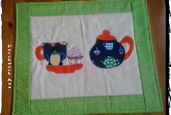 Hola chicas, que tal va la tarde de domingo? Hoy vengo a mostrar lo último que he terminado un salva-mantel con un motivo de una tetera un pastel y una taza para tomarnos un té, un chocolate, o un café... lo que más os guste en esta tarde de domingo un poco fría....