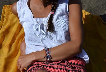Hoy os queremos enseñar a Mamen de Must have by Mamen, nos encanta su blog. y Como combina nuestra toalla pareo y las pulseras charms.  Si quieres ganar unas pulseras como las que lleva, es muy sencillo.
