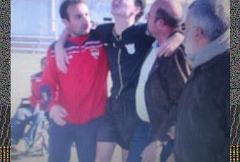 Un grupo de aficionados locales le acorralaron en una de las porterías y le pegaron. Por suerte, su vida no corre peligro, según testigos presenciales.