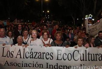 Un grupo de manifestantes de Los Alcázares, uno de los enclaves más afectadas
