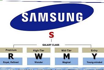 Con el fin de diferenciar a los teléfonos que se engloben dentro de cada una de esas divisiones, los terminales podrán llevar un número detrás de las letras arriba indicadas (por ejemplo, podríamos tener un móvil denominado "Samsung Galaxy R2"). Además, podríamos ver teléfonos con un añadido más: