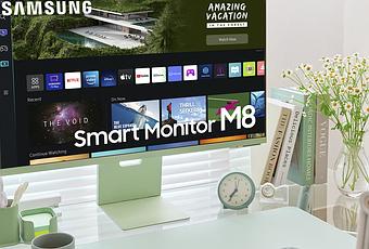 Los modelos de monitores Samsung M5 de 27 pulgadas y M8 de 32 pulgadas son ideales para quienes desean ver, jugar y trabajar sin necesidad de un PC. Ambos son compatibles con Office 365, aplicaciones de streaming y la plataforma Samsung Gaming Hub para jugar sin consola, así como con la función My Contents, que muestra automáticamente contenidos personalizados. El modelo M8 también cuenta con una cámara SlimFit ajustable con Auto Framing para mantener automáticamente el objeto en el centro de la imagen, incluso cuando cambia de posición.