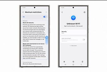 Restricciones máximas establecen una poderosa línea de defensa contra las amenazas cibernéticas actuales. One UI 7 mejora aún más las opciones del usuario con nuevas funciones diseñadas para proteger a aquellos que puedan necesitar protecciones adicionales. Se ha actualizado Restricciones máximas con controles adicionales para las conexiones de red para que los usuarios puedan disfrutar de la tranquilidad que brinda una protección mejorada sin perder el acceso a las funcionalidades clave del dispositivo. Gracias a los controles agregados, los usuarios tienen la opción de bloquear el servicio 2G y evitar que los datos sean interceptados cuando se conectan a redes potencialmente inseguras. Los usuarios también pueden evitar la reconexión automática no deseada a determinadas redes Wi-Fi3 que resulten menos seguras, garantizando que los datos permanezcan privados y al mismo tiempo teniendo la opción de conectarse manualmente si lo desean.