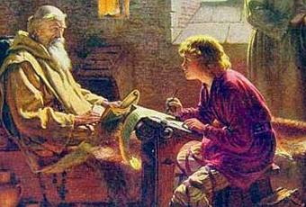 Con tan solo siete años el pequeño Beda (Bede en ingles) ingresó en el monasterio para ser educado por los monjes, y allí permaneció toda su vida hasta su muerte en el 735. Criado entre rezos y manuscritos (que no incunables) pronto paso de leerlos a estudiarlos y analizarlos para finalmente dar a luz importantísimas obras de historia, teología y conocimiento. Su gran obra Historia ecclesiastica gentis Anglorum (que podríamos traducir con el permiso de la profe como "Historia eclesiástica del pueblo ingles") es aceptada unánimemente como el nacimiento de la historiografía inglesa. Es en esta obra donde usa el sistema de numerar los años como a.C. y d.C. propuesto tiempo antes por Dionisio el breve, pero al que nadie hacía mucho caso. La transcendencia de las diversas obras del Beda llevó a toda la cultura cristiana a adoptar dicho sistema como propio.