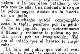 El muchacho quedó compungido ante la tapia, pesaroso por la pérdida de su juguete, pues determinarse a llamar y reclamar la pelota no podía pasar por su imaginación. Tal era el miedo que el hebreo le inspiraba.