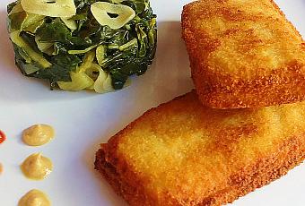 Servimos acompañados de las acelgas sofritas y salsas al gusto.