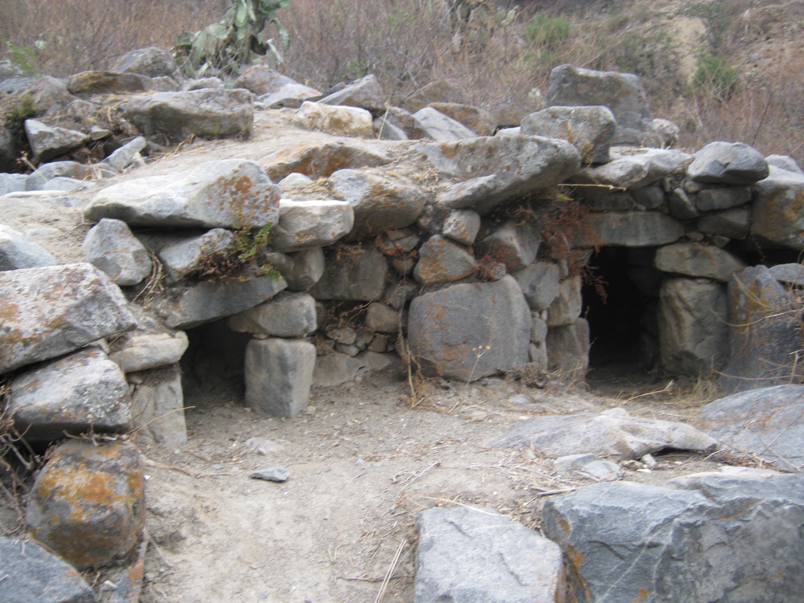 Aproximadamente, 15 minutos después de iniciada la caminata desde el pueblo se llega a la zona arqueológica Huanano, y sé que si llegaran sin saber nada sobre le lugar una sonrisa despectiva se deslizaría sobre sus rostros. Y es que donde está el cartel de “Zona arqueológica de Huanano” hay un portal y dentro unas cuantas formaciones que bien podría haber sido “hechas” por los actuales pobladores. Sin embargo, hay que reparar en que dice zona arqueológica y que obviamente se refiere a que es toda una ZONA, ya que si continuamos el camino a nuestra margen derecha veremos una escaleras que conducen a la verdadera zona arqueológica: se pueden ver distintas construcciones por todo el alrededor y es muy divertido aventurarse a descubrir más construcciones. Eso sí, con mucho cuidado, porque hay hoyos en el suelo y algunas piedras son algo resbalosas.