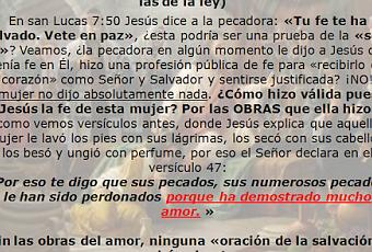 «Por eso te digo que sus pecados, sus numerosos pecados, le han sido perdonados porque ha demostrado mucho amor»Sin las obras del amor, ninguna «oración de la salvación», podrá salvarte.