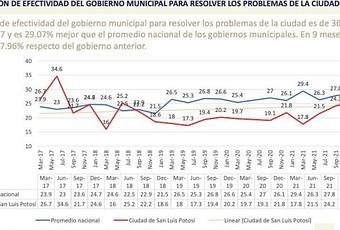 SLP. De acuerdo con la más reciente encuesta del Instituto Nacional de Estadística Geografía e Informática (INEGI) los potosinos reconocen una eficacia del 49.7 mejor que la del gobierno anterior. Así mismo, del ejercicio estadístico también se desprende que la percepción de corrupción de la policía municipal se redujo en un 17.8 por ciento.