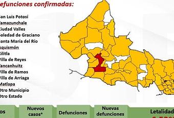 En el mapa mostrado por la Secretaria, sólo aparece la capital potosina en color ojo, mientras que la mayoría del resto de los municipios se encuentra en color amarillo y tan sólo 7 municipios en blanco, representando que en éstos últimos no se encuentra un solo contagio registrado.