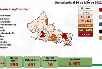 El Comité Estatal para la Seguridad en Salud (CESS) insistió en recordar a la población que la entidad se mantiene en Semáforo Rojo de Máxima Alerta, por lo que se deben reforzar las medidas sanitarias para prevenir contagios. De los nuevos casos, en la ciudad de San Luis Potosí hay 85 nuevos casos positivos, 88 en Ciudad Valles, 19 en Tamazunchale, en Matehuala 15, 11 en Tanlajás, en Soledad 9, 7 en Rioverde, 6 en Ciudad Fernández y Tamuín, 5 en Santa María del Río, Axtla y Xilitla, 4 en San Vicente, 3 en Cárdenas, Tampacán, Tancanhuitz, Tampamolón, 2 en Mexquitic, Matlapa y Aquismón, 1 en Ahualulco, Cedral, Salinas, Cerritos, Ciudad del Maíz, Tamasopo, Tanquián, y 2 foráneos que fueron confirmados a Coronavirus.