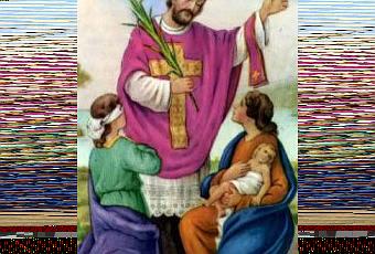 (1) En la imagen, una clásica y conocida estampita de San Valentín, en una fusión entre los dos Valentín más conocidos. A la derecha, la niña ciega, a la izquierda, el niño paralítico, milagro del santo de Terni.